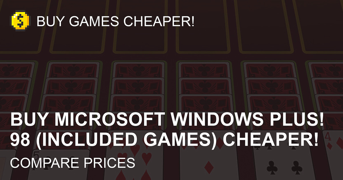 Buy Microsoft Windows Plus! 98 (included games) cd key cheaper! Compare prices in trusted game stores to find the lowest one. You can filter regions (region free, global, EU, US, etc), game editions, platforms, shops and activations services. Buy, activate the key, download the game and stop paying double price for Microsoft Windows Plus! 98 (included games) and other games with BuyGamesCheaper comparison engine!