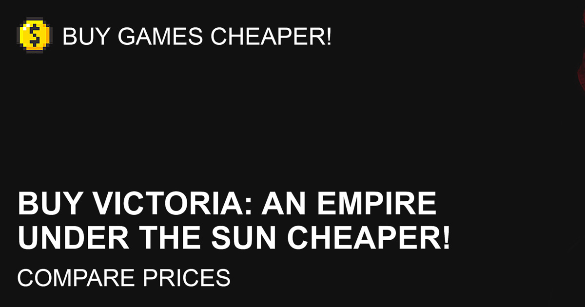 Buy Victoria: An Empire Under the Sun cd key cheaper! Compare prices in trusted game stores to find the lowest one. You can filter regions (region free, global, EU, US, etc), game editions, platforms, shops and activations services. Buy, activate the key, download the game and stop paying double price for Victoria: An Empire Under the Sun and other games with BuyGamesCheaper comparison engine!